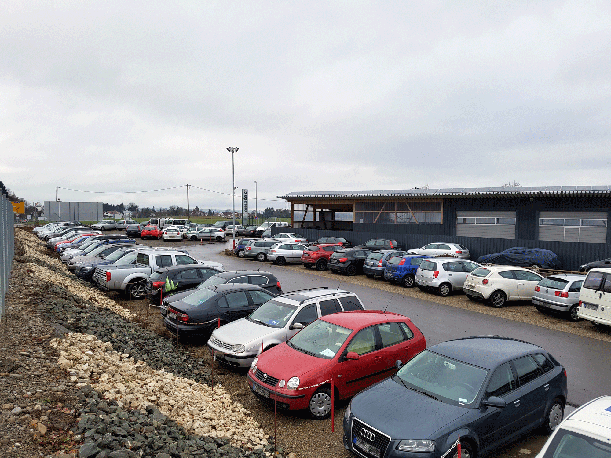 Wir sind der erste Parkplatz links, wenn Sie Richtung Terminal fahren.